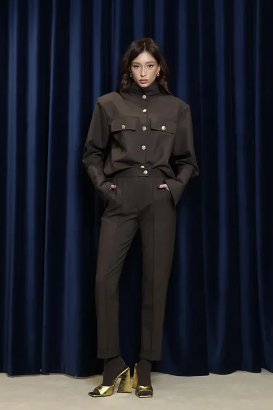 Elegantna demonstracija kako isti materijal može biti savršeno iskorišćen za kreiranje kompleta sa pantalonama ili suknjom